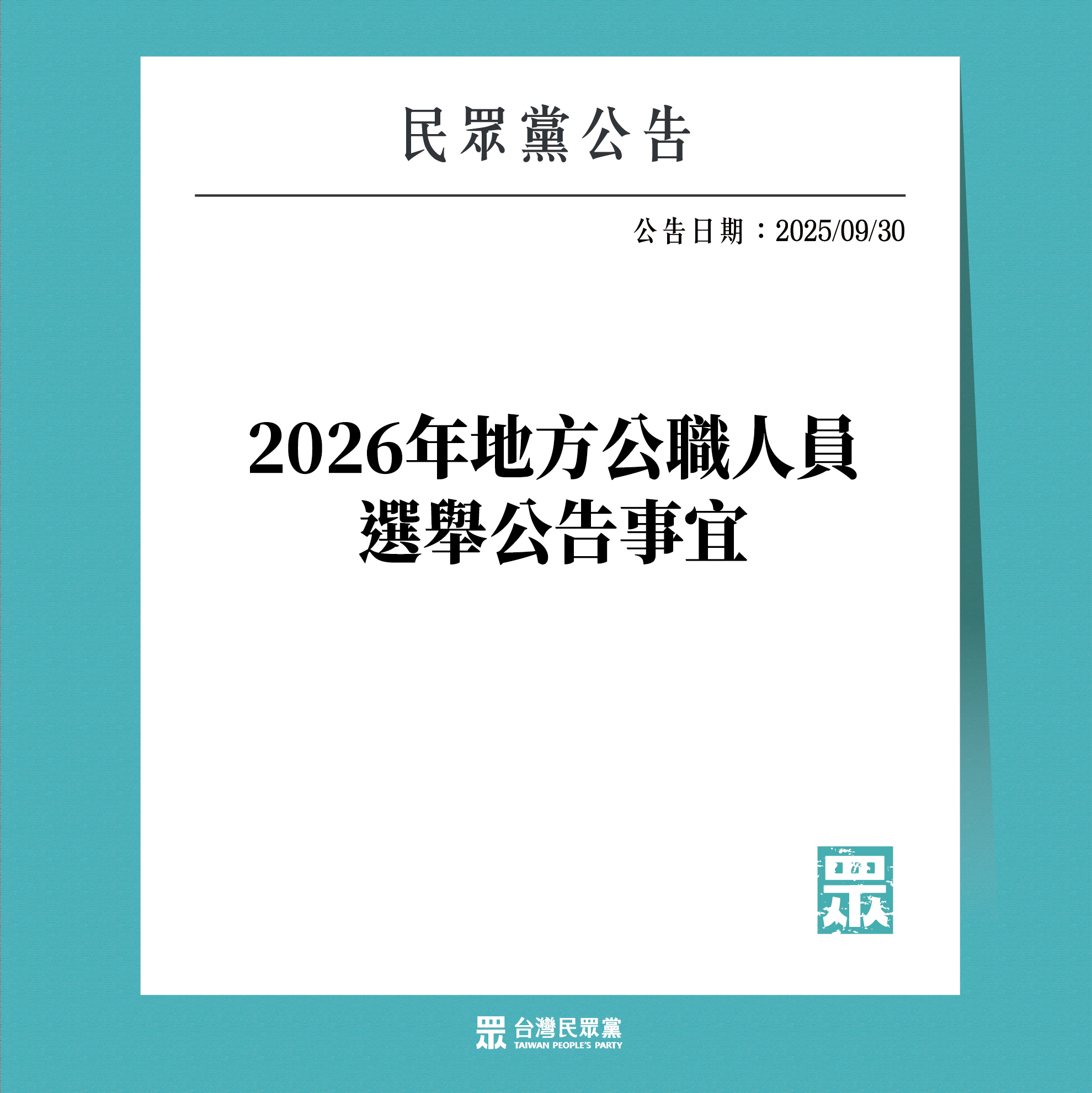 【民眾黨公告】2026年地方公職人員選舉公告事宜