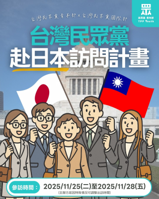 【你準備好與民眾黨走向國際舞台了嗎?】 這一次,民眾黨青年部與國際部攜手籌辦「2025 台灣民眾黨 赴日本訪問計畫」,從政治、經濟、文化等多面向展開交流,展現台灣青年的熱情與實力! 期許透過此交流...