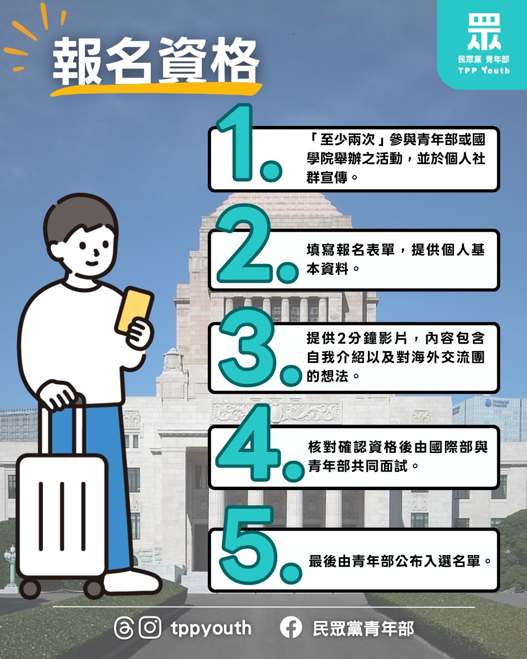 這一次,民眾黨青年部與國際部攜手籌辦「2025 台灣民眾黨 赴日本訪問計畫」,從政治、經濟、文化等多面向展開交流,展現台灣青年的熱情與實力!